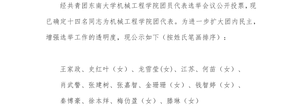 机械工程学院团代表候选人公示:(按姓氏笔画排序)
