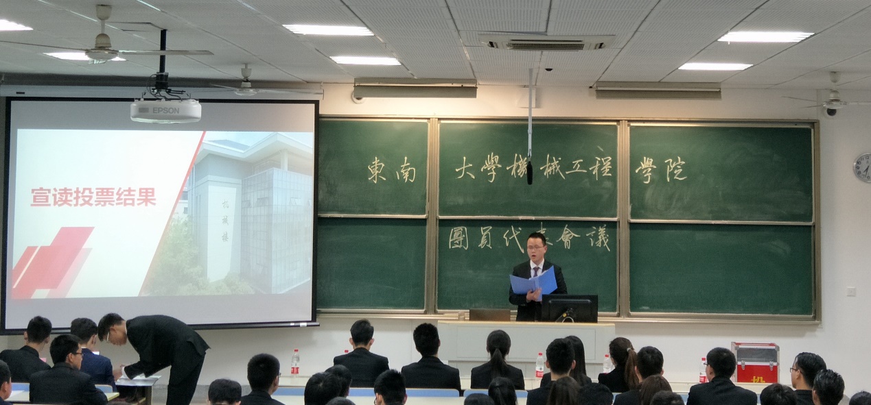 经过工作人员细致监票,计票,审票之后,由总监票人柏硕老师宣布各候选人得票数,由主持人杨雯皓宣布最终团员代表名单。