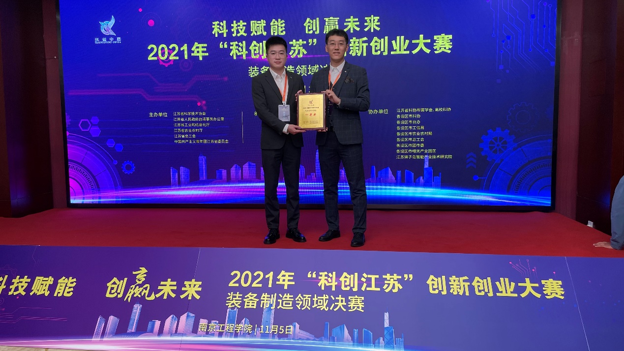 2021年11月5日,由江苏省科协、省台湾事务办公室、省工业和信息化厅、省农业农村厅、省总工会、共青团江苏省委主办的2021年“科创江苏”创新创业大赛装备制造领域决赛在南京工程学院落下帷幕。本次大赛涉及信息技术、装备制造、新材料、生命科学、农业科技、食品科学6个领域,各推荐单位共遴选出了1002个创业项目参赛。经过专家评审,最终确定入围决赛项目180项。