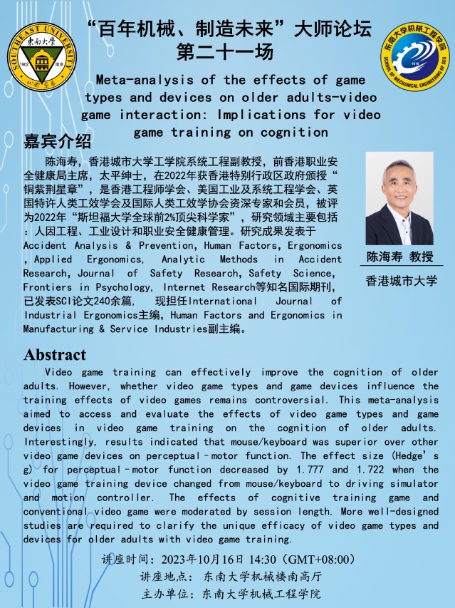 讲座地点: 东南大学机械楼南高厅