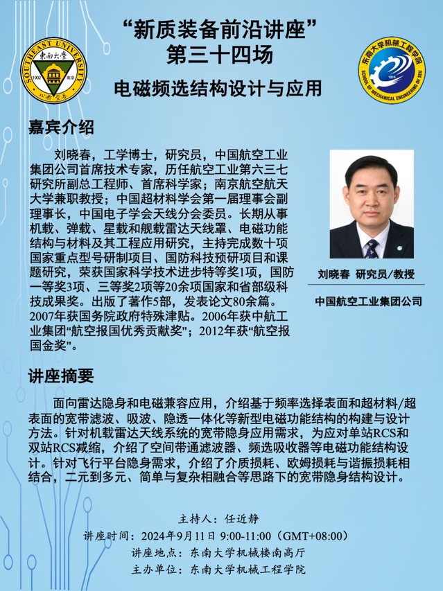 “新质装备前沿讲座” 第三十四场:刘晓春研究员/教授——电磁频选结构设计与应用